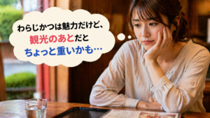 わらじかつは魅力的。 でも、観光帰りの体には少し強すぎる日もあります。